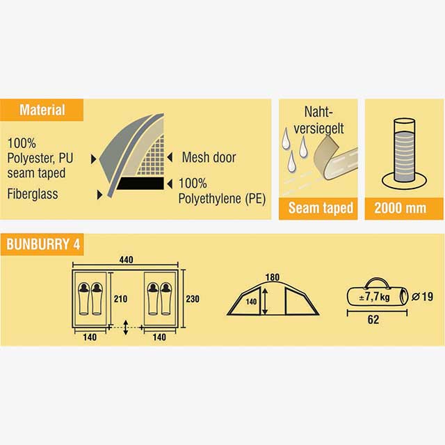 With the Bunburry 4 Tent, you’ll enjoy a combination of comfort and practicality, enhancing your outdoor experience. Its thoughtful design and durable construction make it a reliable choice for any adventure.