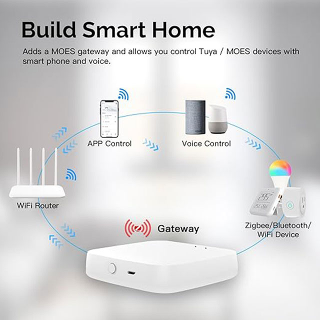 - Included in the Box: 1 x MOES ZigBee & Bluetooth Mesh Gateway, USB Power Adapter, User Manual