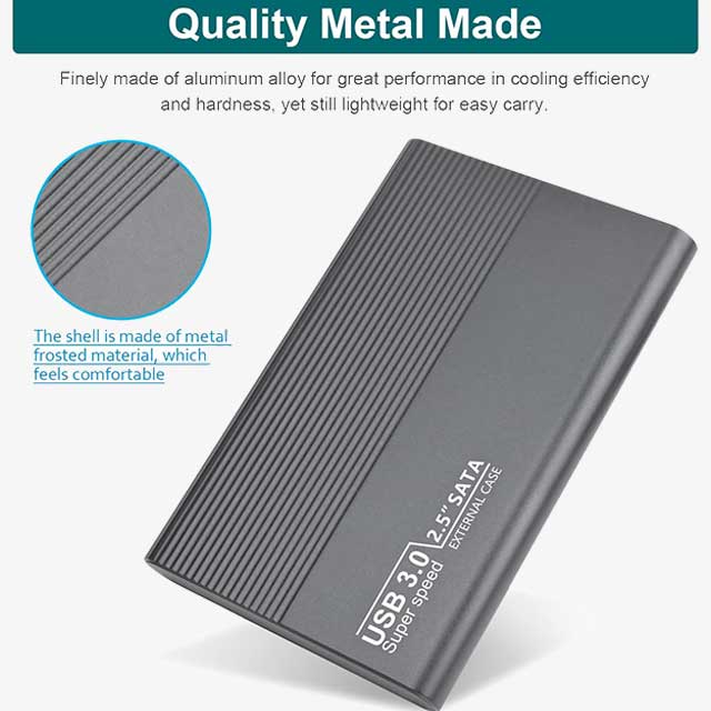 Portable External Hard Drive Case USB 3.0 – Compatible with Computers, Laptops, and Chromebooks