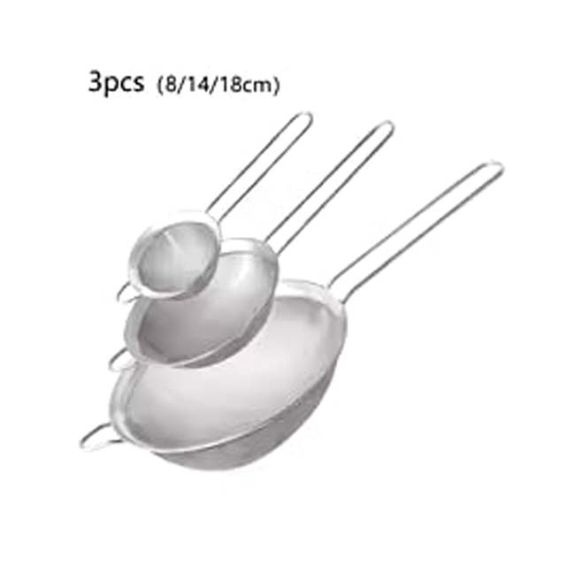 - 3-Piece Set: Includes 8cm, 14cm, and 18cm strainers for various kitchen tasks.