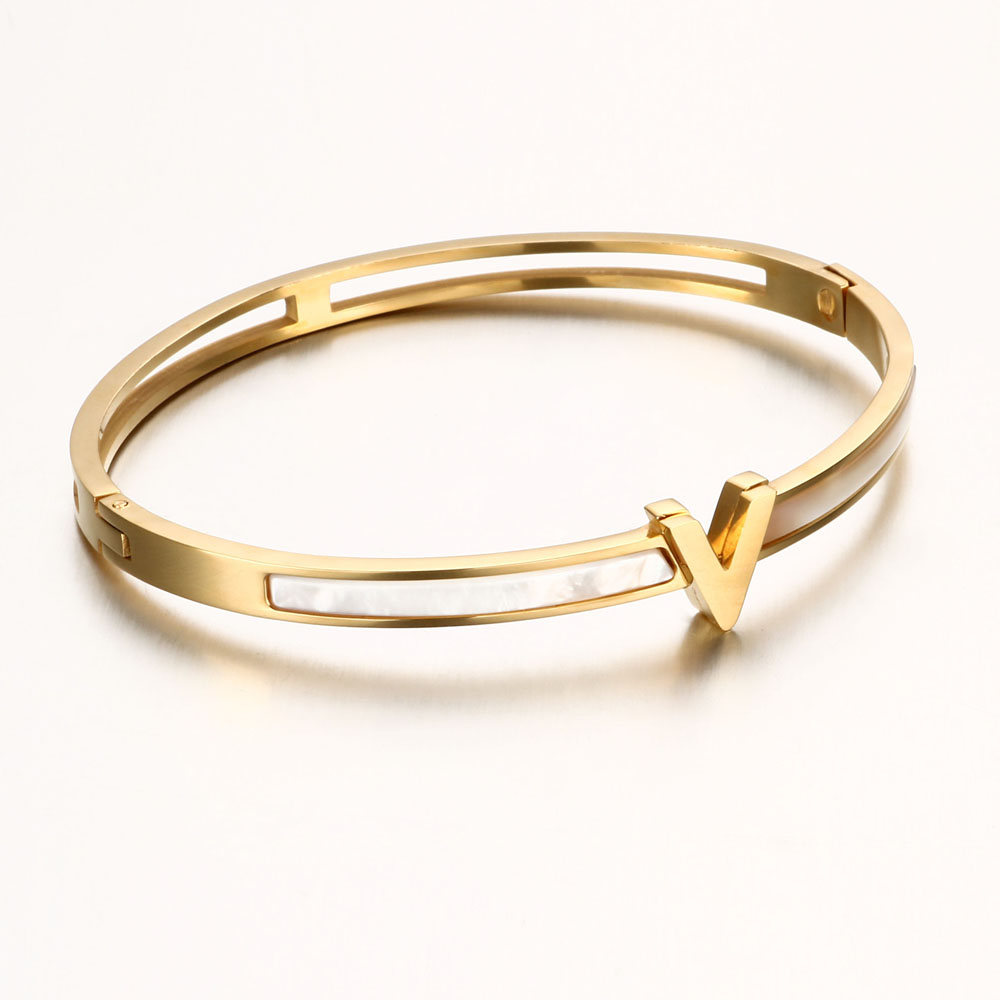 V-Shape Stainless Steel Cuff Bangle (EGBT366) quantity