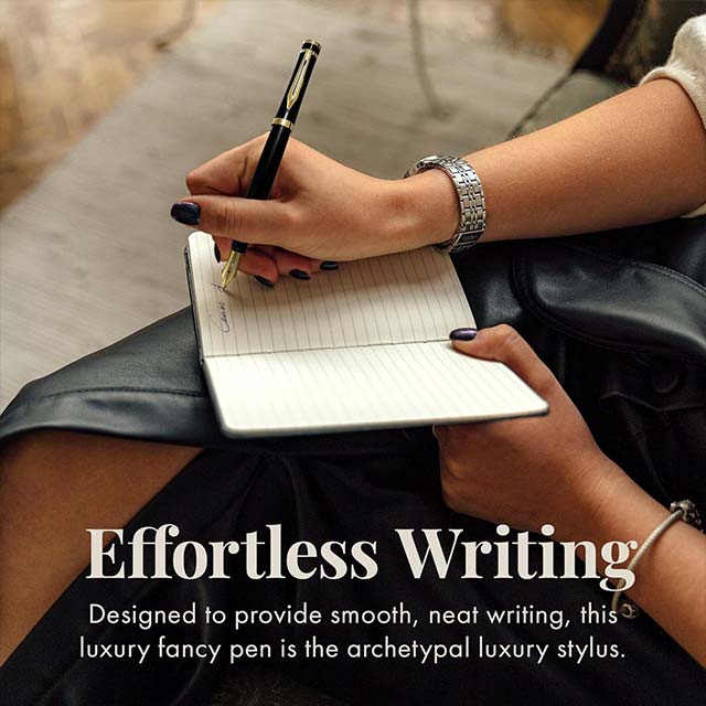 ✔️ Elegant Black Gold Design: A beautifully crafted fountain pen with a striking black and gold finish that offers a professional, polished look.