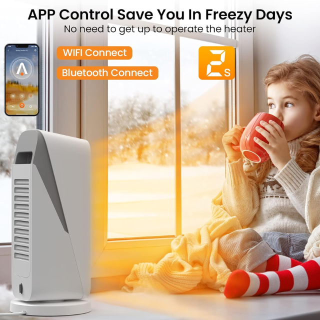 • Smart WiFi Control: Connect via app to adjust temperature, set timers, or switch modes remotely.