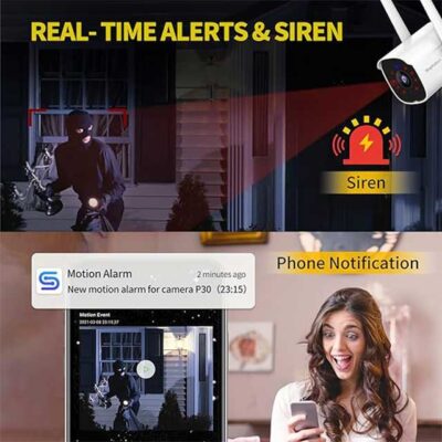 Septekon Outdoor Security Camera – 2K Wireless CCTV with Dual Antenna | IP66 Waterproof, Night Vision, AI Motion Detection & 2-Way Audio (P30i, White)
