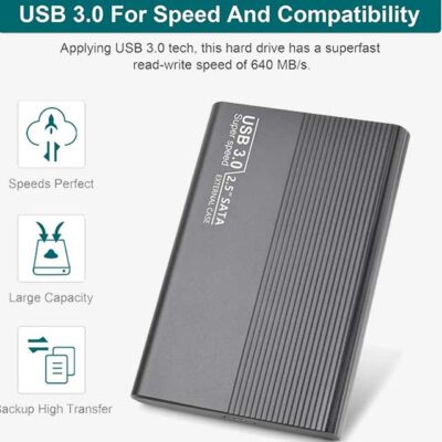 Portable External Hard Drive Case USB 3.0 – Compatible with Computers, Laptops, and Chromebooks